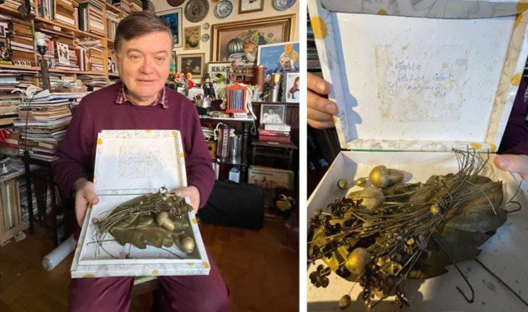 Tiyatro sanatçısı Necdet Mahfi Ayral'ın bu çelengin parçalarını kutunun içinde sakladığını, 2004'te yaşamını yitirmesiyle kızının bunları kendisine verdiğini söyledi.