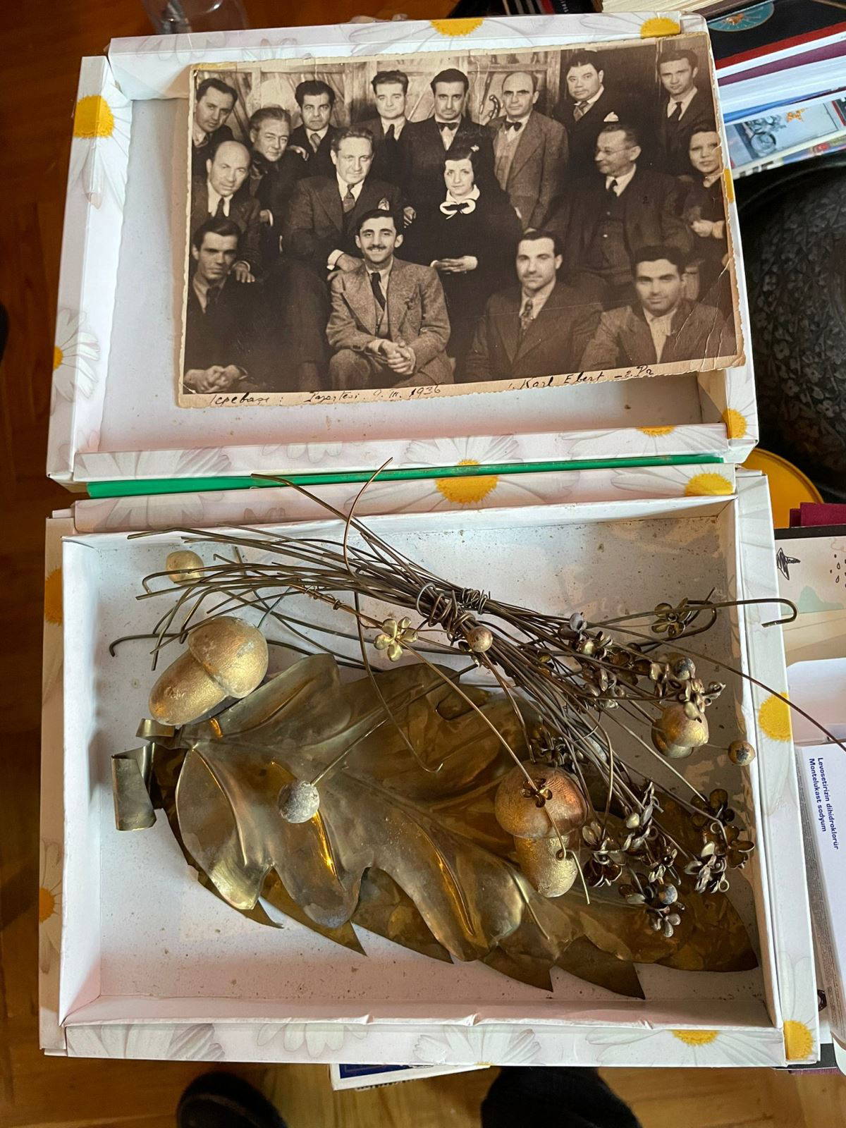 Erkin, çelengi yapan sanatçılar ile bu çelengin Atatürk'ün cenaze kortejinin en önünde taşındığı anda çekilen fotoğrafları da sakladığını anlattı.