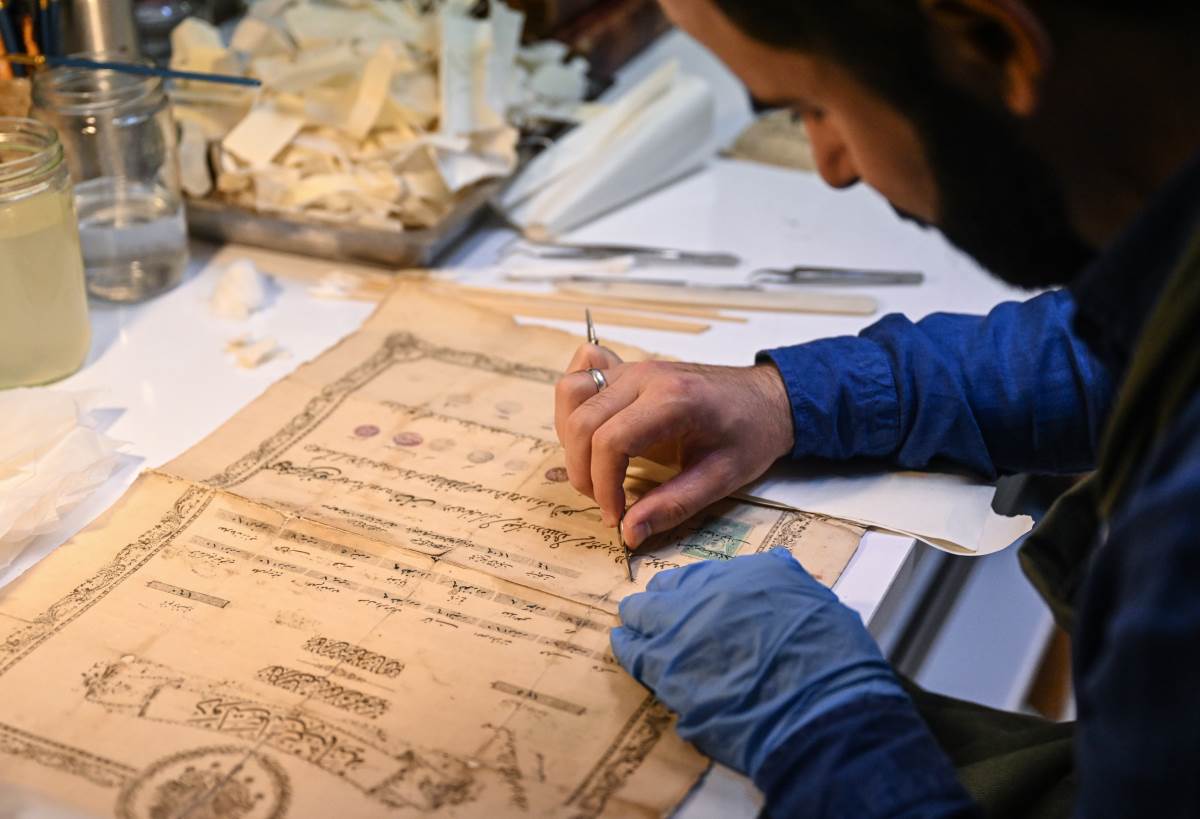 Şahin Genç, AA muhabirine, kağıt eser restorasyonunun sabır ve hassasiyet gerektiren bir iş olduğunu söyledi.