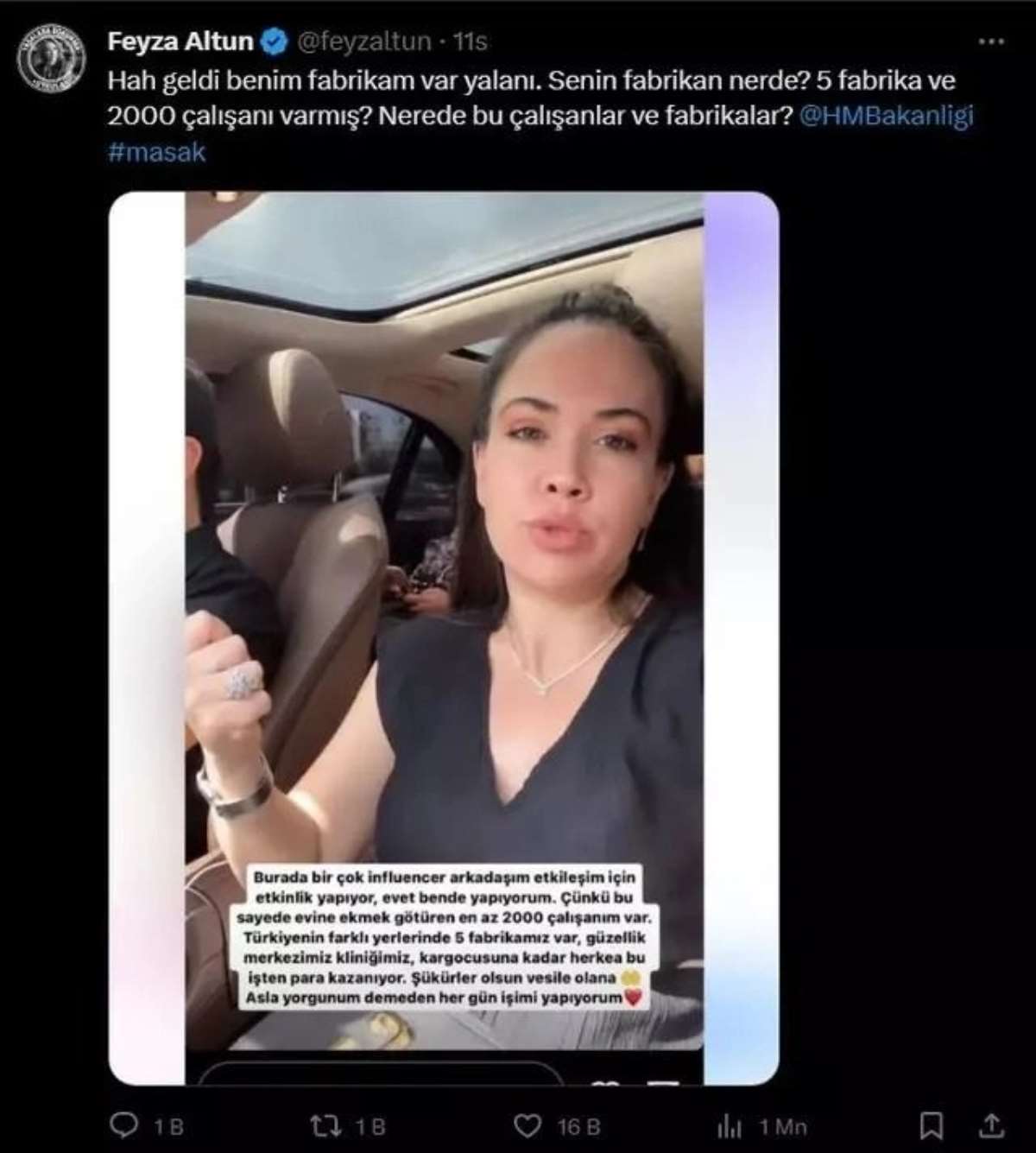 Özlem ve Tayyar Öz'ün kozmetik sattıkları firmayı 2021'de kurduğunu, 2022'de de 245 bin TL vergi ödediğini iddia eden Feyza Altun, "2022 model bir Renge Rover 13-14 milyon. Bir milyon kar edip 13 milyonluk arabaya binmek neredeyse imkansız gibi" dedi.