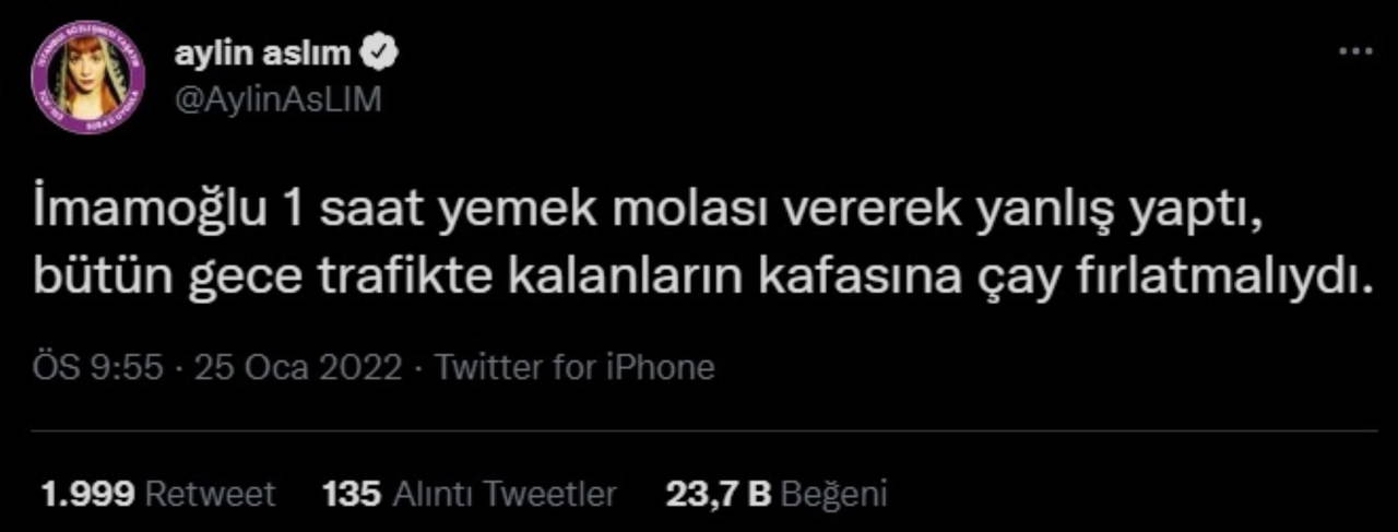 gece trafikte kalanların kafasına çay fırlatmalıydı.”
