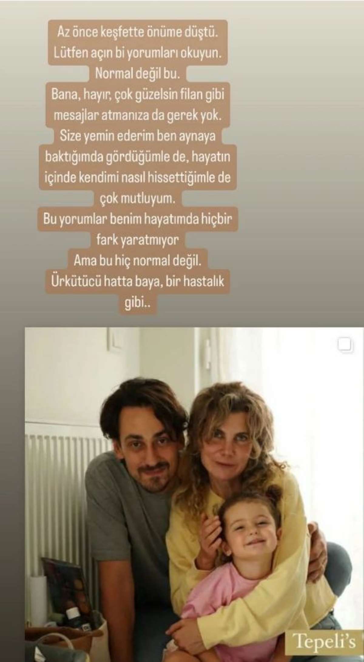 Tatari, sosyal medya hesabından yayınladığı fotoğraflara güzellik algısı üzerinden yapılan yorumlara isyan etti.