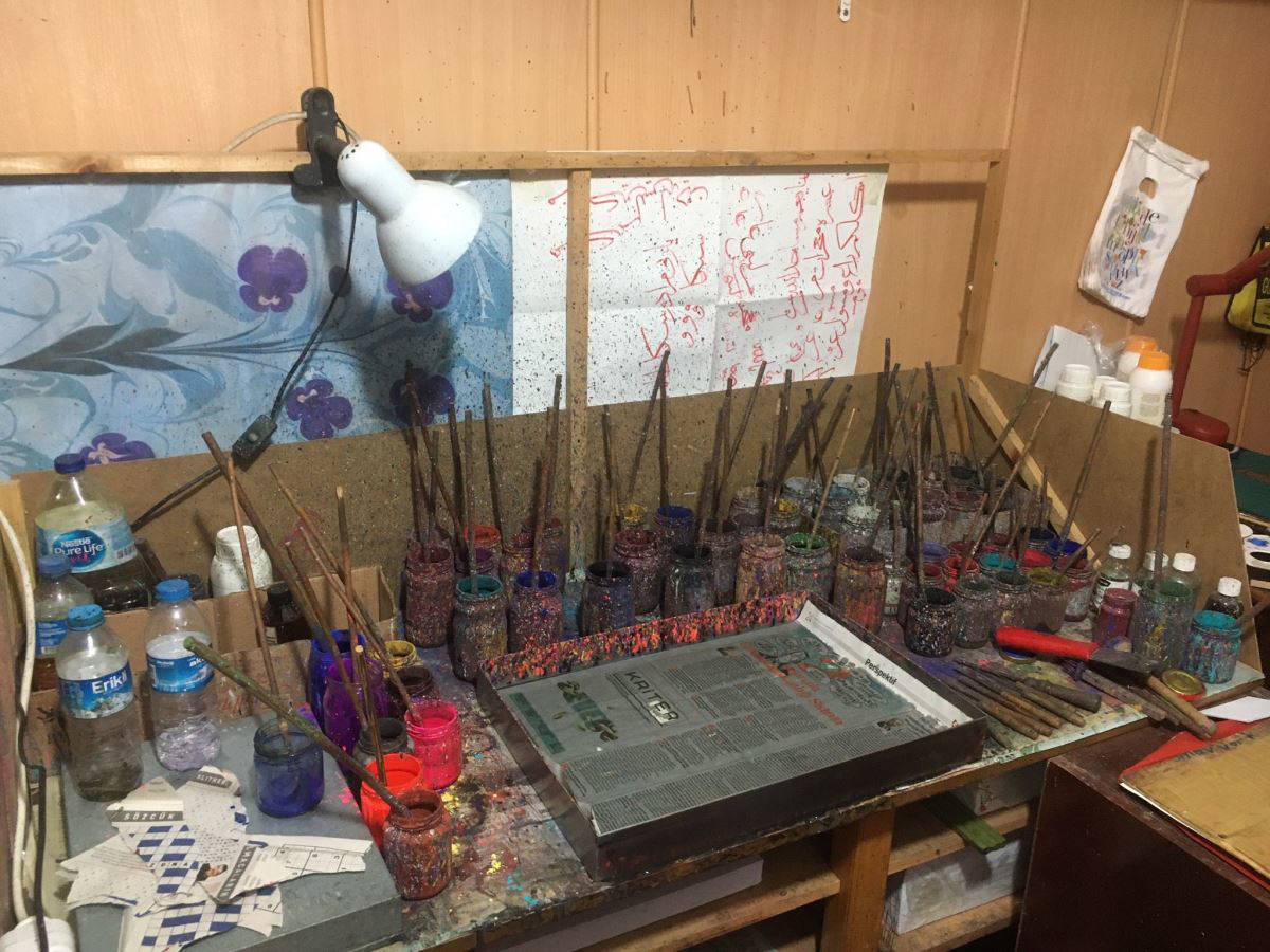 Babasının dükkanının kapanmaması için mesleğini bıraktığını ifade eden Küllüoğlu, “Adana’da komiser yardımcısı olarak 5 yıl çalıştım. Çalışmam esnasında 2 yıl önce babamı kaybettim. Rahmetli babam ebru sanatçısıydı, bu sanata 40 yılını verdi. Babamın vefatından 6 ay sonra baba mesleğini devam ettirmek, bu dükkanın kapanmasını önlemek için meslekten istifamı verdim. Şu an burada hem ebru sanatını devam ettirmeye çalışıyorum hem de baba mesleğini sürdürmek için dükkanın açık kalmasını sağlıyorum” dedi.