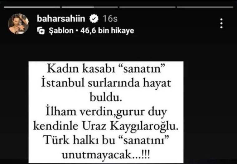 "Kadın kasabı 'sanatın' İstanbul surlarında hayat buldu. İlham verdin, gurur duy kendinle Uraz Kaygılaroğlu. Türk halkı bu 'sanatını' unutmayacak!"