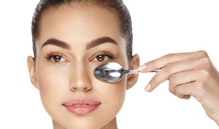Soğutulmuş bir kaşığı ya da buz küpünü hafif hareketler torbaların olduğu bölgeye bastırarak uygulayın.