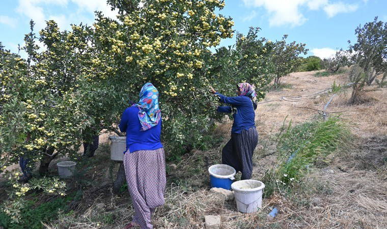 İlçede sezonun ilk alıç hasadı, çiftçi Abdulkerim Kahlar'ın Benlidere Mahallesi'ndeki tarlasında yapıldı.