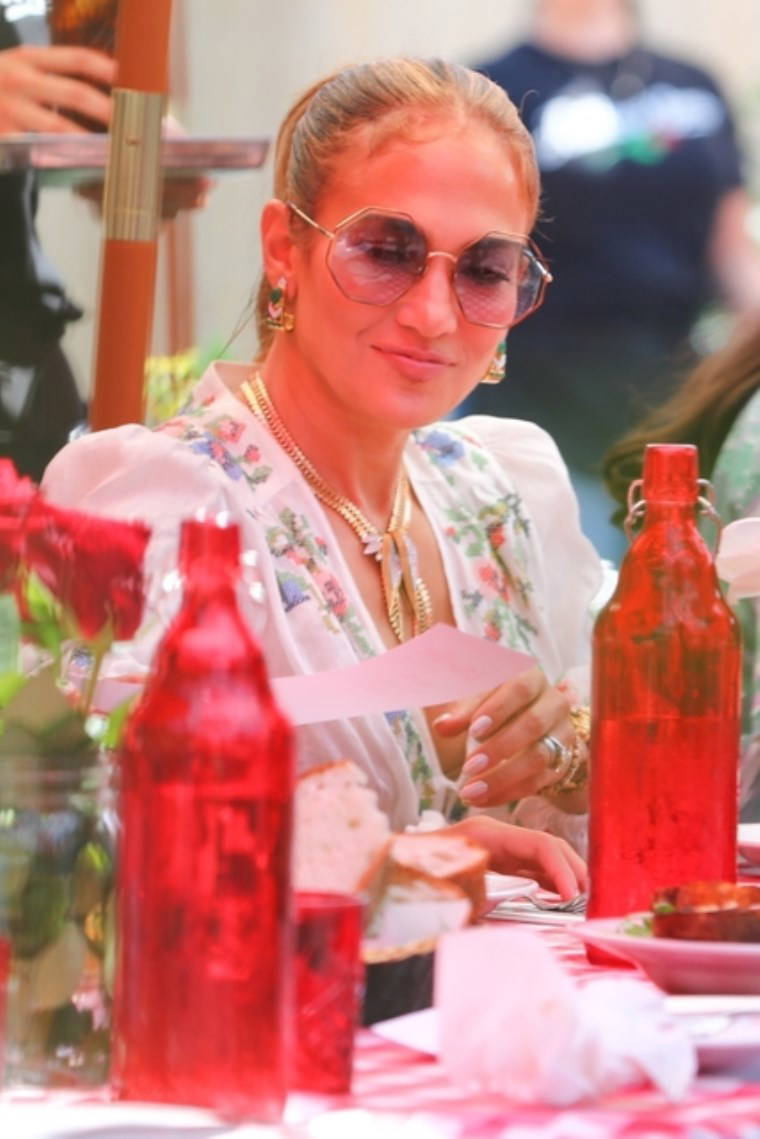 Jennifer Lopez'in öğle yemekli kutlamasında eski eşi Marc Anthony'den dünyaya gelen ikizleri Max ve Emme de onunla birlikteydi.