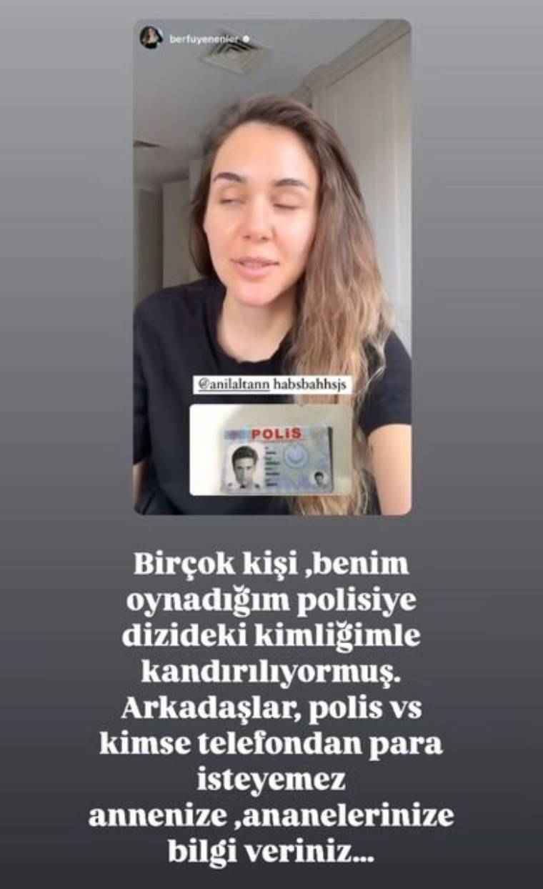 2015 Miss Turkey Güzellik Yarışması'na katılan ve Eser Yenenler'in eşi olan Berfu Yenenler, sosyal medya hesabından paylaştığı videolarla telefon dolandırıcılarının hedefi olduğunu açıkladı. Yenenler, dolandırıcıların, oyuncu Anıl Altan'ın bir polisiye dizide canlandırdığı karakterin polis kimliğini kullanarak kendisini dolandırmaya çalıştıklarını belirtti.