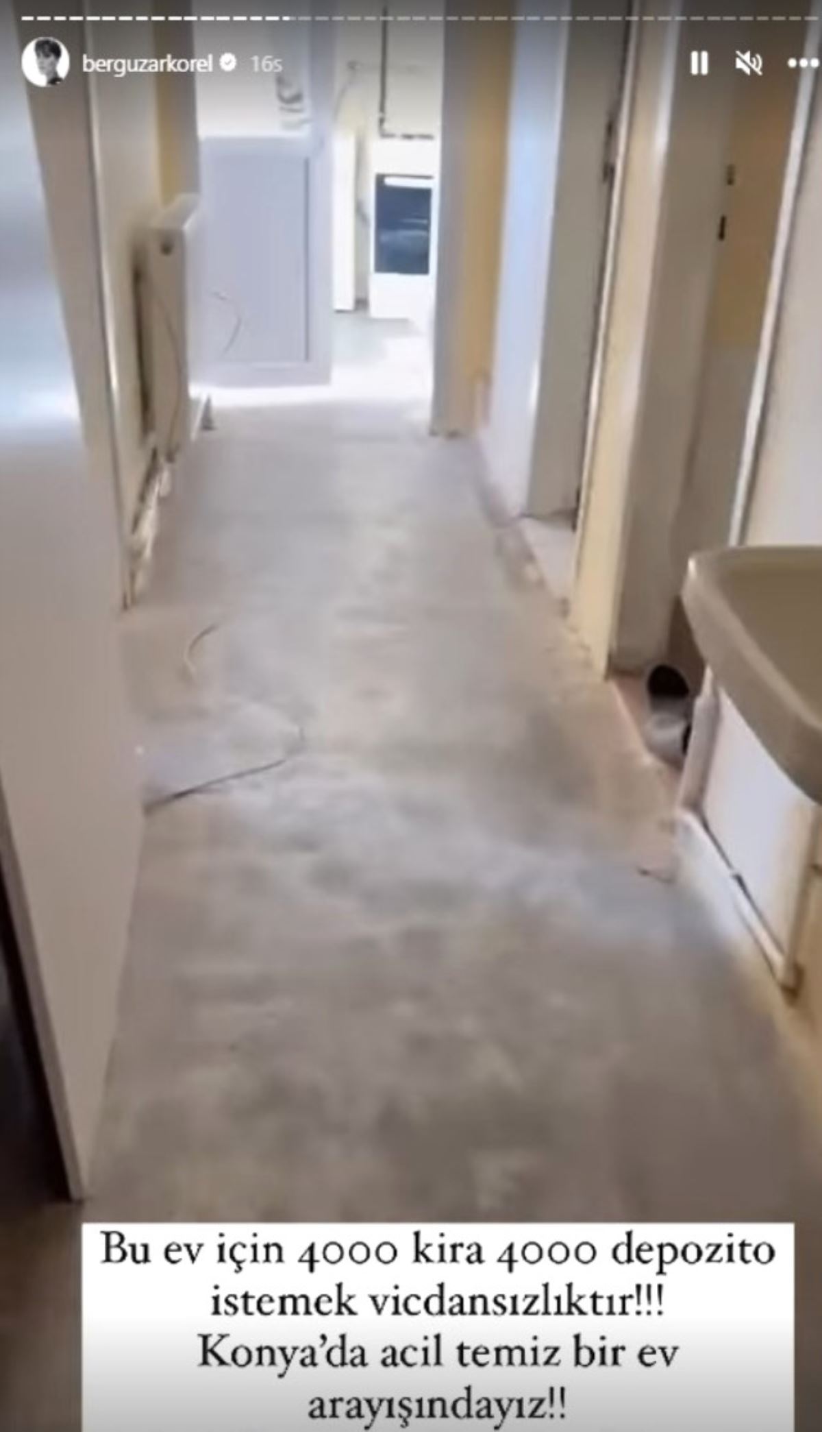 Oyuncu son olarak Konya'da 4 bin TL kira ve 4 bin TL depozito istenen evin durumunu paylaşıp isyan etti.
