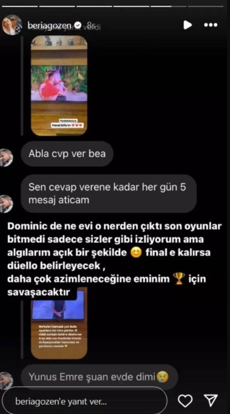 Yunus Emre'nin eşine bu konuda mesaj yağdı. Beria Özden ise en sonunda iddialara yanıt vererek "Dominik'te ne evi o nereden çıktı son oyunlar bitmedi sadece sizler gibi izliyorum ama algılarım açık bir şekilde" dedi.