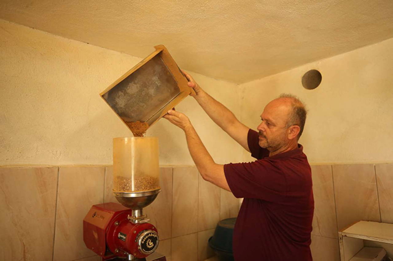 Cemil Kısa, nohut kahvesini hazırlarken yerli nohut kullanmayı tercih ediyor. Atölyesindeki fırında kavurduğu nohutları daha sonra iki ayrı makinede öğüten Kısa, bu aşamadan sonra nohutları pişirmeye hazır hale getiriyor.