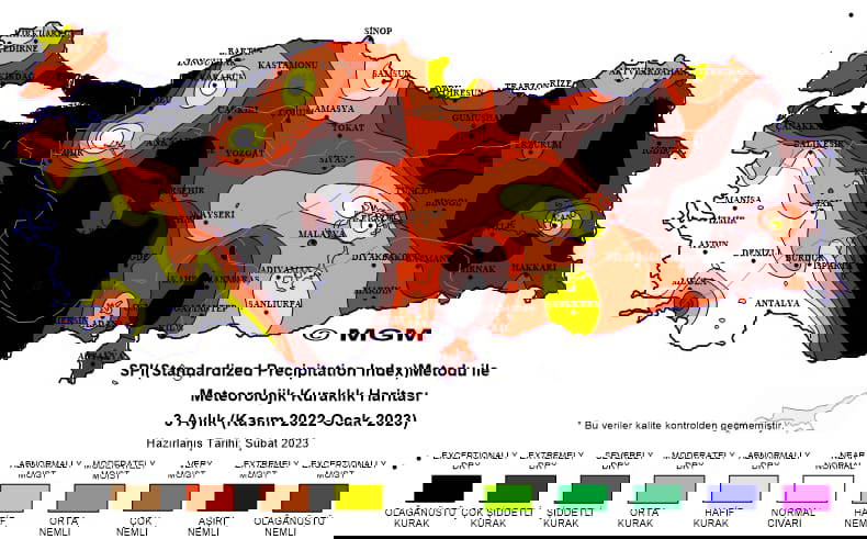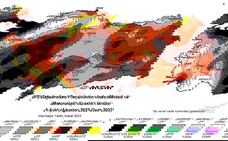 Bölgede yağış rejimindeki değişkenlik nedeniyle Çevre, Şehircilik ve İklim Değişikliği Bakanlığı Meteoroloji Genel Müdürlüğü'nün güncel haritasında kuraklığın etkisi daha da belirgin hale geldi.