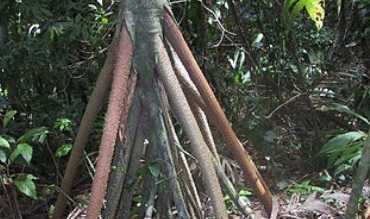 Bu ağaç aynı zamanda "yürüyen palmiye" olarak da adlandırılan 'Socratea exorrhiza'dır .