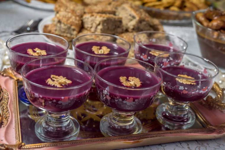 Üzümlerinizi iyice yıkayın. Saplarından ayıklayarak tencerenin içerisine alın. Üzerine su ve şeker ilave ederek kısık ateşte pişmeye bırakın. Üzümler iyice suyunu bırakıp, eriyene kadar pişirin. Ardından büyükçe bir süzgeçten geçirin. Ezilmemiş olan üzümleri kaşık yardımıyla iyice ezin. Elde ettiğiniz üzümlü şekerli karışımından bir kepçe kaseye ayırıp kalanını tencerenin içerisine alın. Kepçeyle ayırdığınız üzüm suyunu mısır unuyla karıştırın ve tencereye ilave edin. Ardından buğday nişastasını da ekleyip karıştıra karıştıra yedirin. Karışımı koyulaşana dek kaynatın. Karışımı koyulaşana dek kaynatın. Dilediğiniz kıvama geldiğinde kaselere doldurun. Servis kaselerinin içinde bir süre ılımasını bekleyin. Ilıdıktan sonra buzdolabına kaldırın ve iyice soğumalarını sağlayın. Soğuyup, kıvamı iyice oturan tatlılarınızı file Antep fıstığı ve ceviz içiyle süsleyerek servis edebilirsiniz. Afiyet olsun!