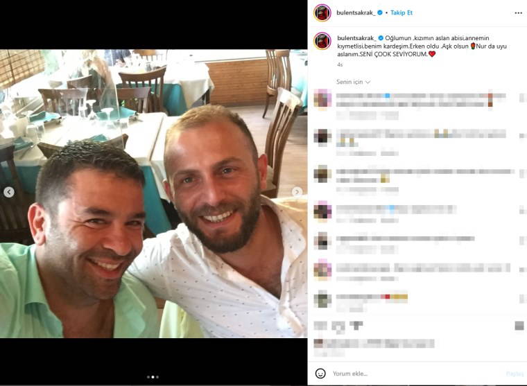 Şakrak, paylaşımında Keleş’in fotoğraflarına yer vererek, "Oğlumun, kızımın aslan abisi, annemin kıymetlisi, benim kardeşim. Erken oldu. Aşk olsun... Nur da uyu aslanım. SENİ ÇOOK SEVİYORUM." ifadelerini kullandı.
