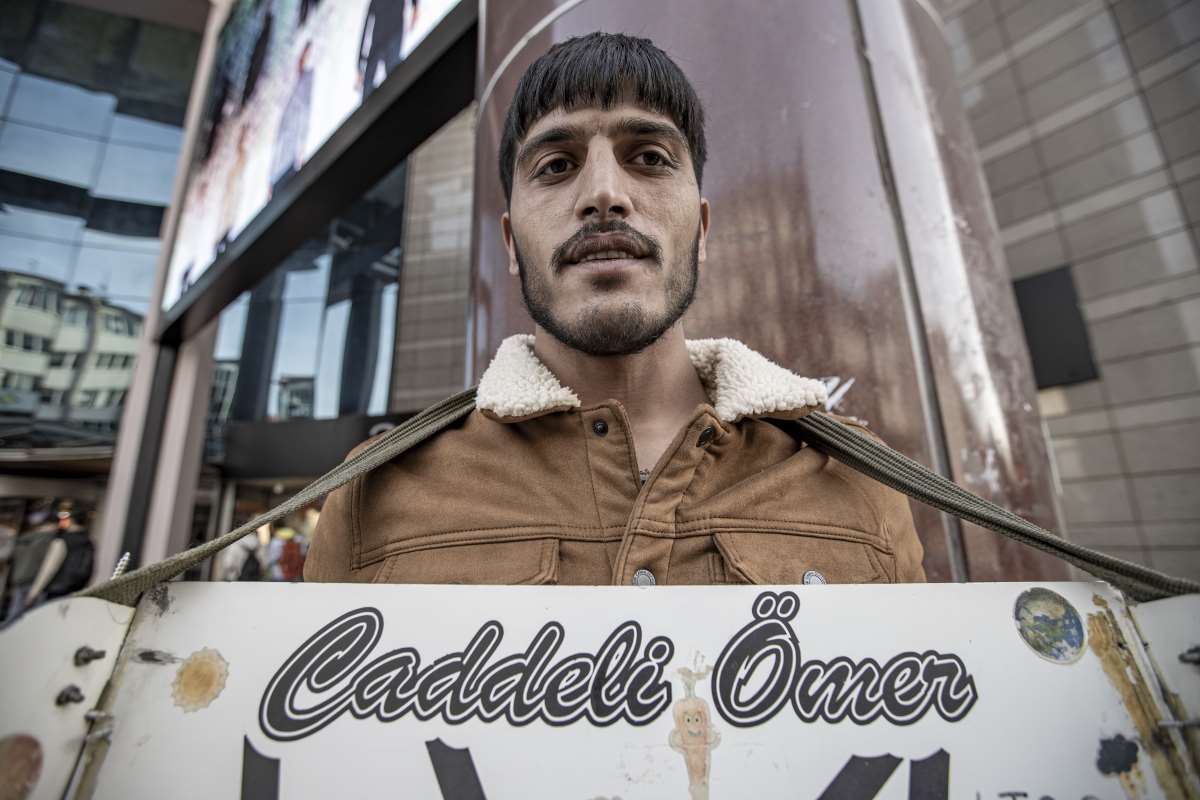 Erzurum'da annesinin 21 yıl önce cüzdanındaki son parasını verdiği 1 lirayla henüz 5 yaşındayken ayakkabı boyacılığına başlayan "Caddeli Ömer" lakaplı Ömer Demir, boynuna astığı tezgahıyla şehri gezerek çikolata ve bisküvi satıp ailesine destek oluyor.