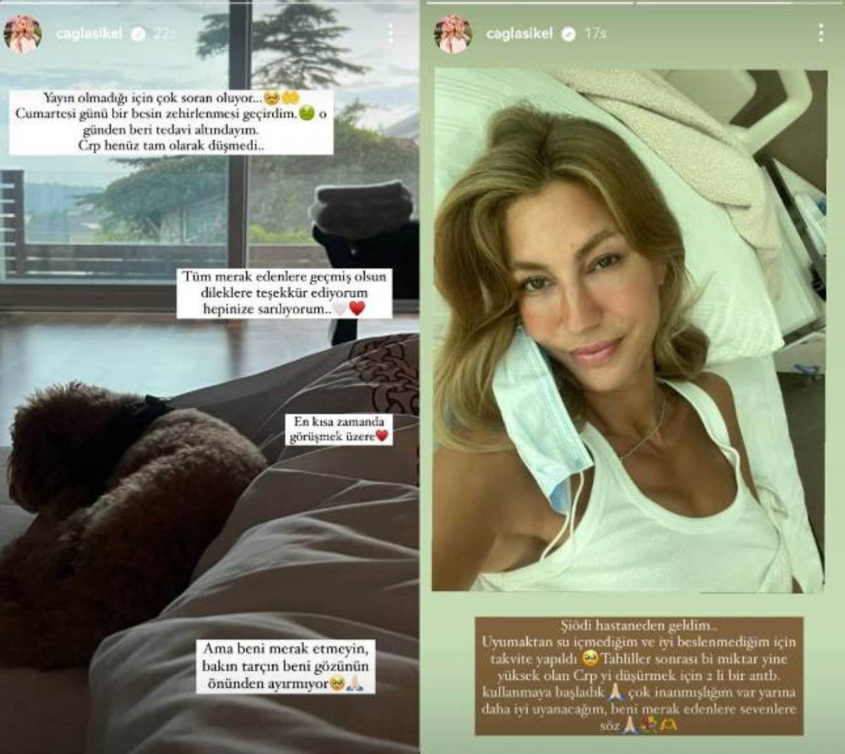 Gıda zehirlenmesi nedeniyle hastanede tedavi gördüğünü söyleyen Şıkel, “Yayın olmadığı için çok soran oluyor. Cumartesi günü besin zehirlenmesi geçirdim. O günden beri tedavi altındayım. Crp henüz tam olarak düşmedi. Tüm merak edenlere, geçmiş olsun dileklerine teşekkür ediyorum, hepinize sarılıyorum. Beni merak etmeyin bakın Tarcın gözünün önünden ayırmıyor” dedi.