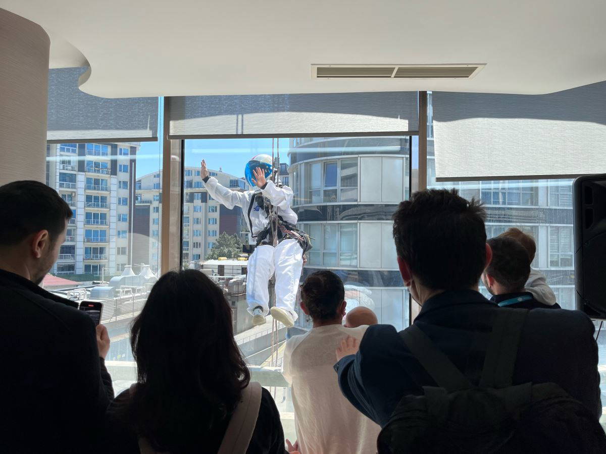 Örümcek adam ve astronot kıyafetleri giyen dağcılar da hastane çatısından aşağı inerek çocukların bulunduğu camların önüne geldi, miniklerin bayramını kutladı. Sürprizle büyük mutluluk yaşayan minikler, etkinlikler doyasıya eğlendi. Organ nakli olan küçük Halit Özkoç da camda gördüğü karakterleri şaşkınlıkla izledi. Enstrümanı ile şarkı söyleyen bir doktor ise küçük dinleyicilerinin alkışları arasında konser verdi.