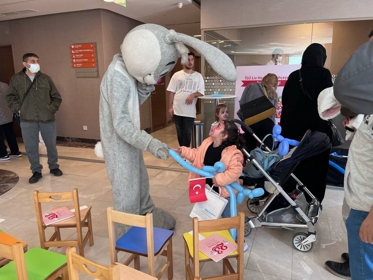 Bu yıl 103'üncü yıl dönümü kutlanan 23 Nisan Ulusal Egemenlik ve Çocuk Bayramı’nı hastanede geçiren çocuklar unutulmadı. Esenyurt’ta bulunan özel bir hastanede düzenlenen etkinlikte çeşitli nedenlerle hastanede bulunan onlarca çocuk, renkli kostümler giyen animatörler eşliğinde dans etti.