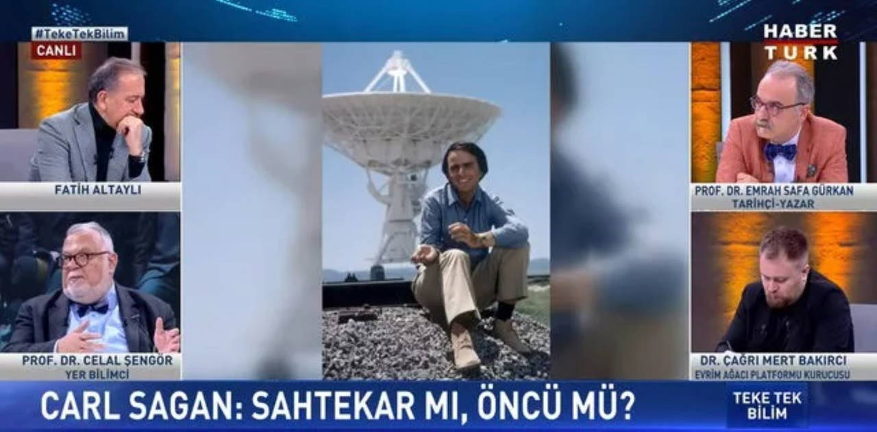 Yayında Sagan'ı da eleştiren Celal Şengör ise Gürkan'a dönerek "Sen şimdi Carl Sagan'ı s....et. Sen tarihçisin" dedi. Şengör'ün canlı yayındaki bu sözleri ise tarihçi Gürkan'ı kahkaha krizine soktu.