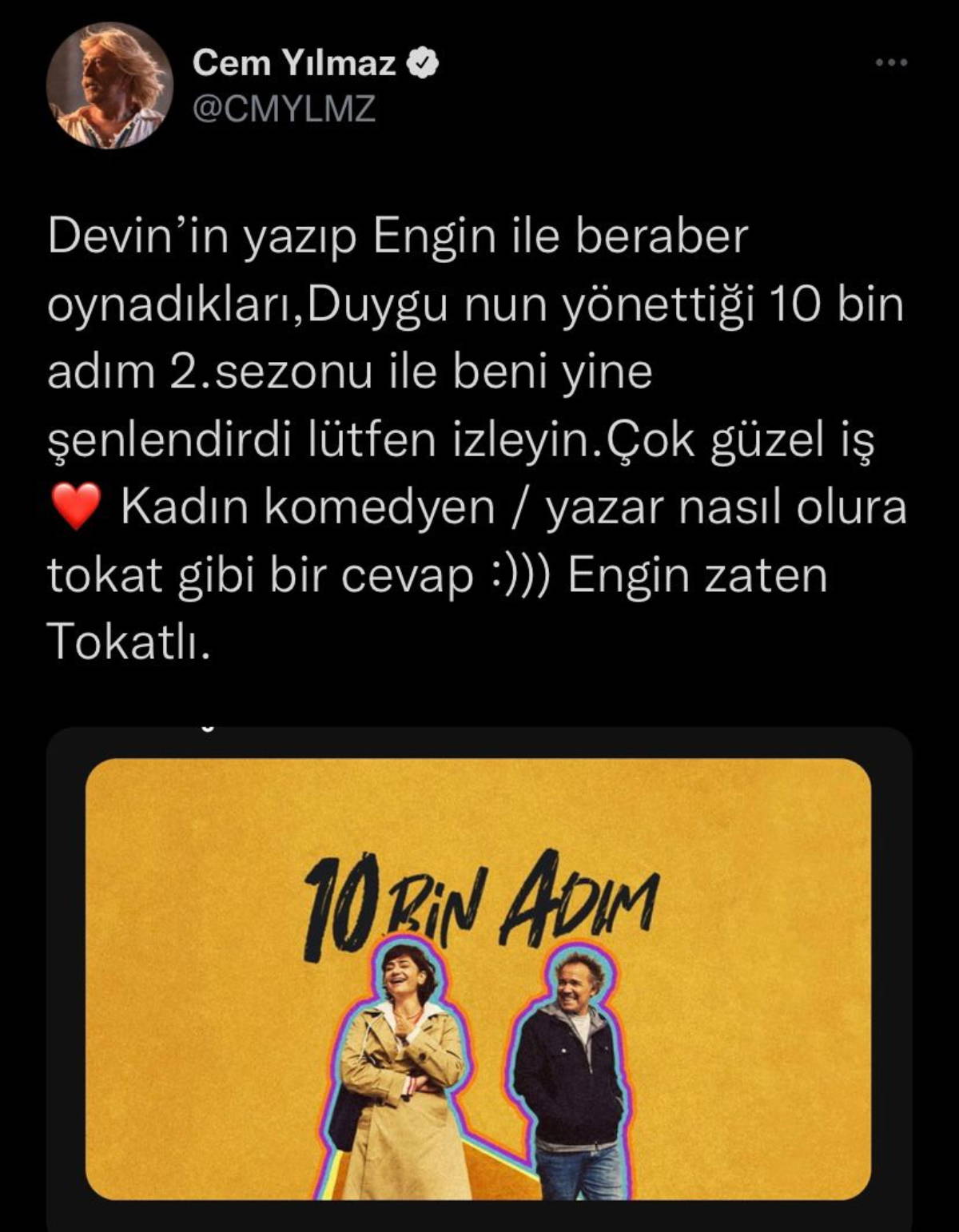 Twitter hesabından '10 Bin Adım' dizisinin ikinci sezonu için
