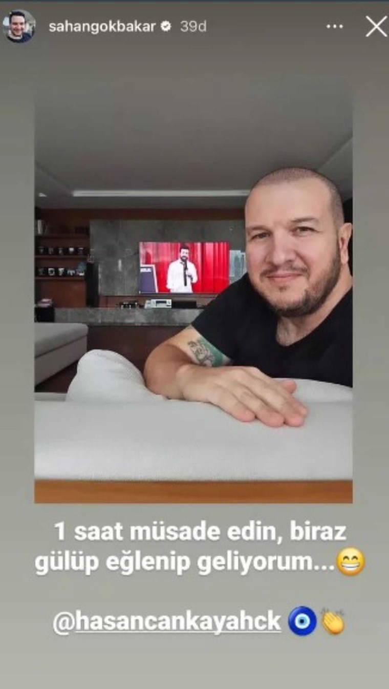 Gökbakar'ın sosyal medya hesabından paylaştığı fotoğrafta Hasan Can Kaya'nın sunduğu Konuşanlar programını izlediği görüldü. Gökbakar paylaşımına, "1 saat müsade edin, biraz gülüp geliyorum" notunu düşerek Kaya'yı etiketledi.