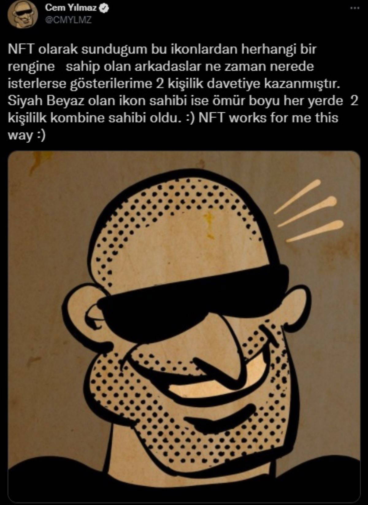 Cem Yılmaz, NFT satışı yapan ünlüler arasına katılmıştı. Ünlü komedyen, yaptığı çizimleri dijital ortamda imzalayarak, Twitter hesabı üzerinden satacağını duyurmuştu.