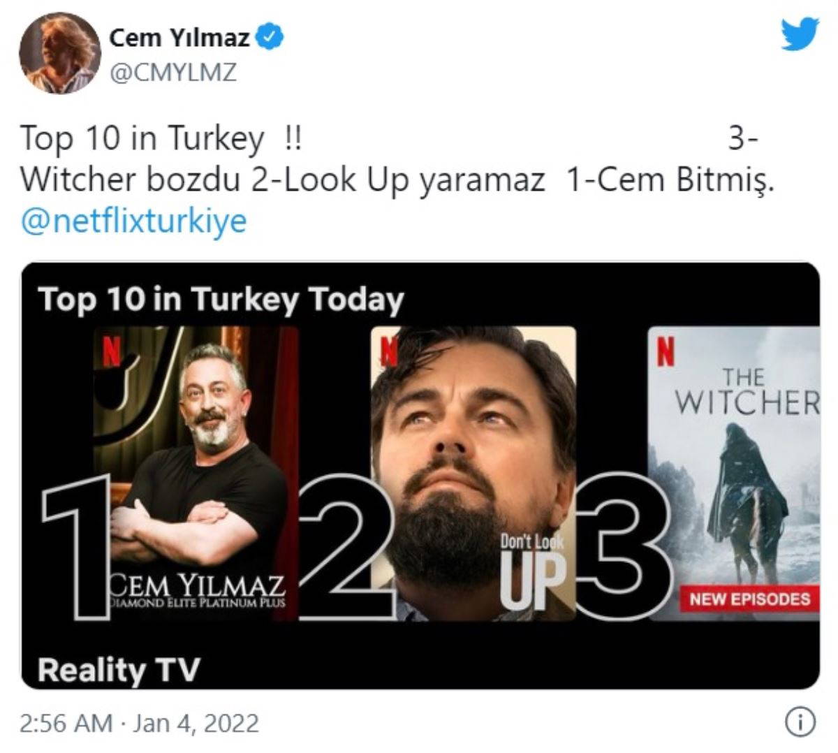“Top 10 in Turkey! 3- Witcher bozdu 2- Look Up yaramaz 1- Cem bitmiş.”