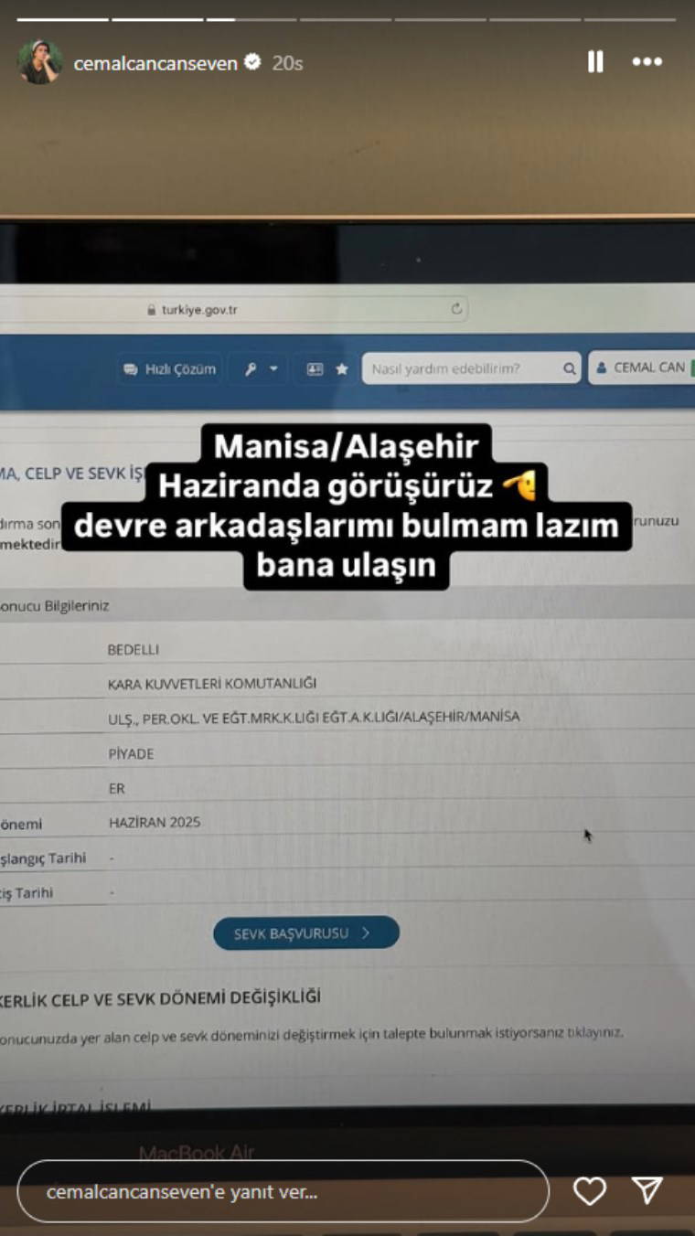 Canseven, gönderisinde "Manisa/Alaşehir. Haziranda görüşürüz. Devre arkadaşlarımı bulmam lazım, bana ulaşın" notunu düşerek heyecanını dile getirdi.