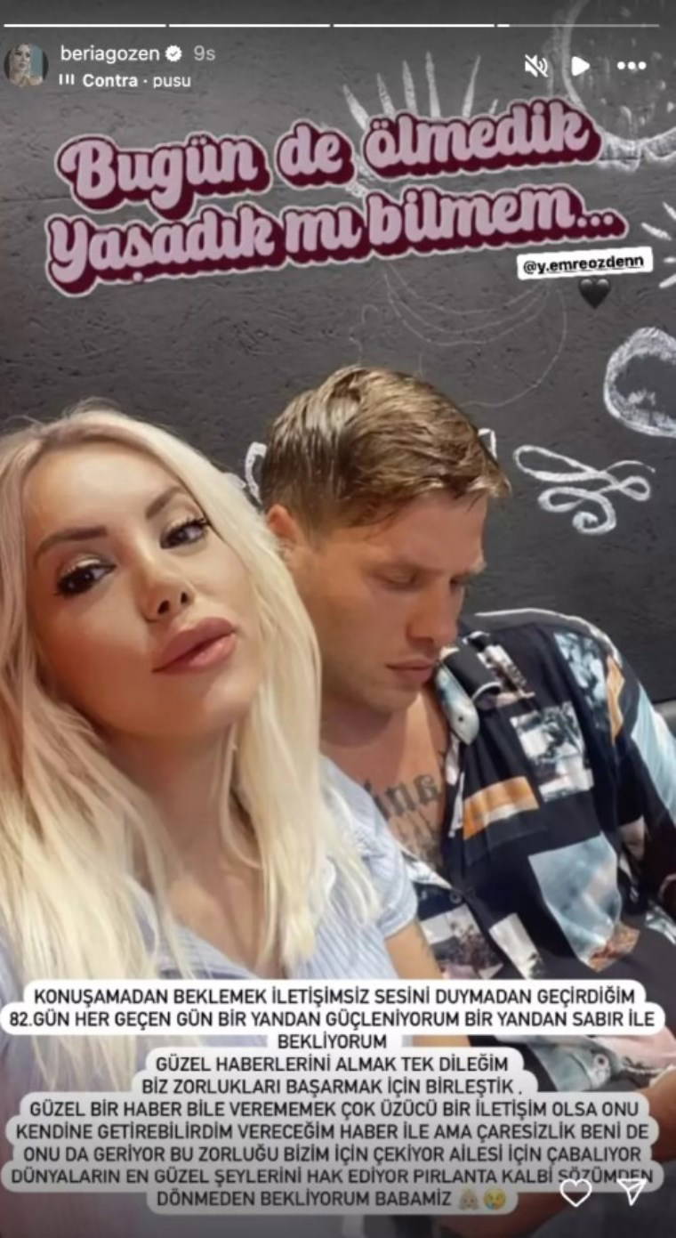 Özden'in açıklaması şu şekilde:"Konuşmadan beklemek, iletişimsiz sesini duymadan geçirdiğim 82. gün. Her geçen gün bir yandan güçleniyorum bir yandan sabır ile bekliyorum. Güzel haberlerini almak tek dileğim. Biz zorlukları başarmak için birleştik. Güzel bir haber bile verememek çok üzücü. Bir iletişim olsa onu kendine getirebilirdim vereceğim haber ile ama çaresizlik beni de onu da geriyor.