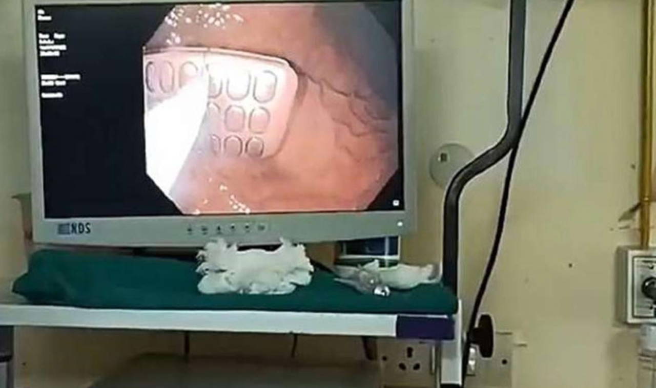 Hastaneye kaldırılan tutuklu yaklaşık bir hafta boyunca müşahede altında tutuldu. 15 Ocak'ta gerçekleştirilen endoskopiyle 7 santimetre uzunluğunda ve 3 santimetre genişliğindeki cihaz çıkarıldı.