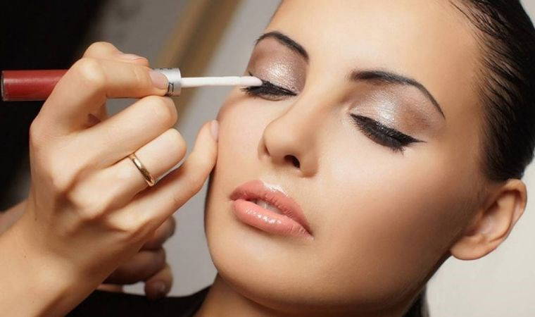 Göz kapaklarına far uygulanır, eyeliner ile gözler belirginleştirilir ve maskara ile kirpikler hacimlendirilir.