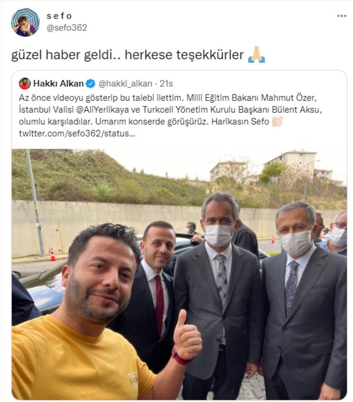 Sefo’nun Twitter’da yönelttiği soruya yanıt, bir etkinlikte Milli Eğitim Bakanı Mahmut Özer ve İstanbul Valisi Ali Yerlikaya ile görüşen teknoloji gazetecisi Hakkı Alkan’dan geldi.