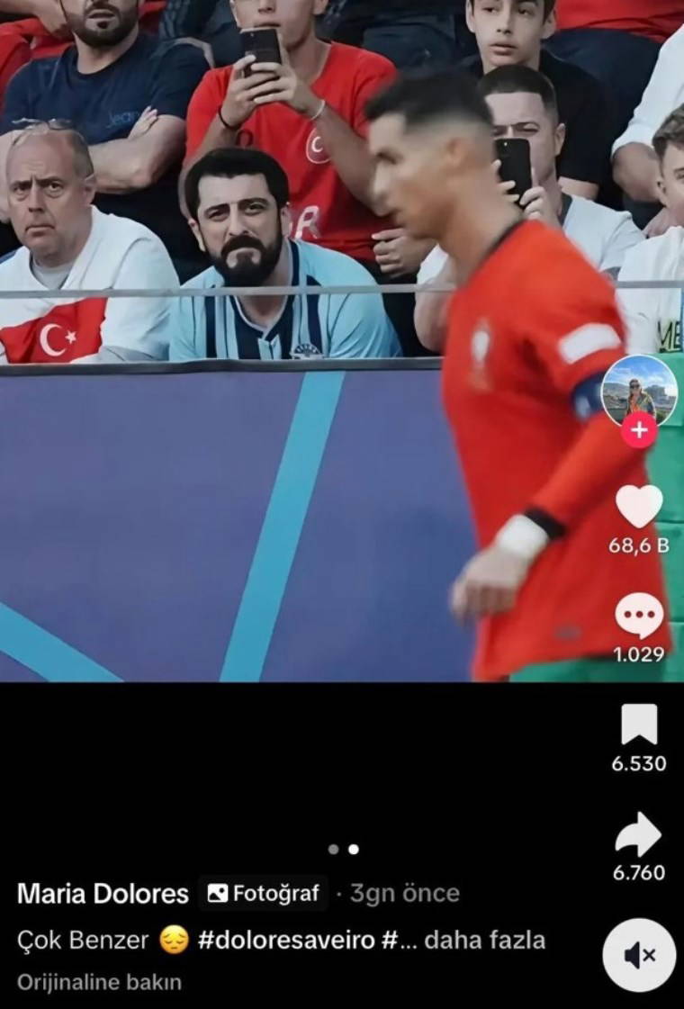 Ünlü oyuncunun maçı tribünde izlerken çekilen bazı fotoğrafları, sosyal medyada hızla yayılıp Portekiz milli takımının dünyaca ünlü forveti Cristiano Ronaldo'nun babasına benzetilmişti.
