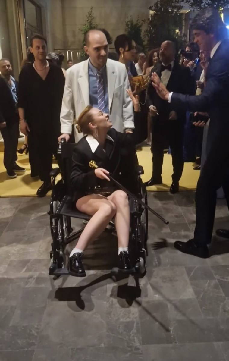 "Ayağım set temposunda biraz yoruldu, yırtık var. Tam teşekkülü bir MR çekilmesi gerek ama iyiyim. Biraz nazar değdi" diyen başarılı oyuncu Mandarin Oriental Bosphorus’ta düzenlenen Style Awards gecesine bastonla geldi. İlerleyen saatlerde de ünlü oyuncu tekerlekli sandalye kullandı.