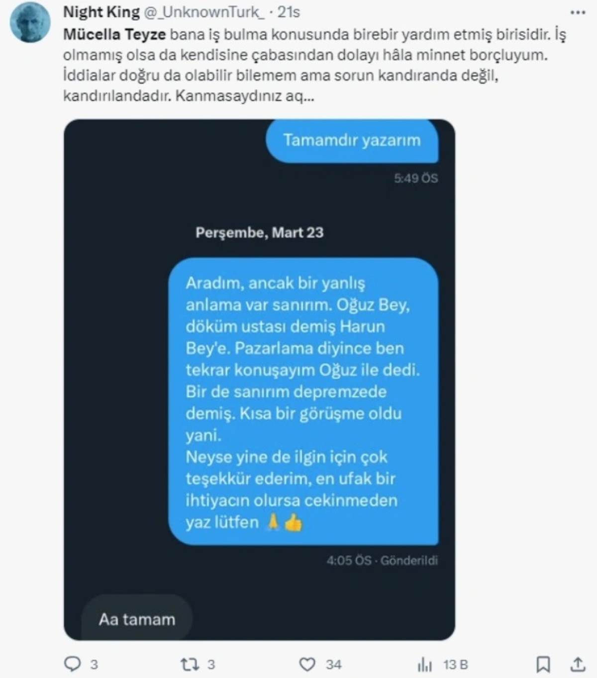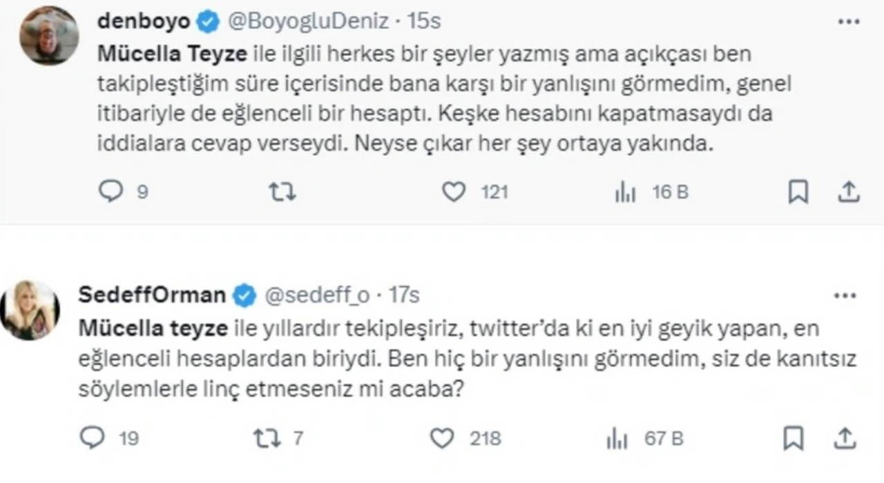 Akkaya'nın bu sözlerinden sonra Mücella Teyze adlı hesabın
