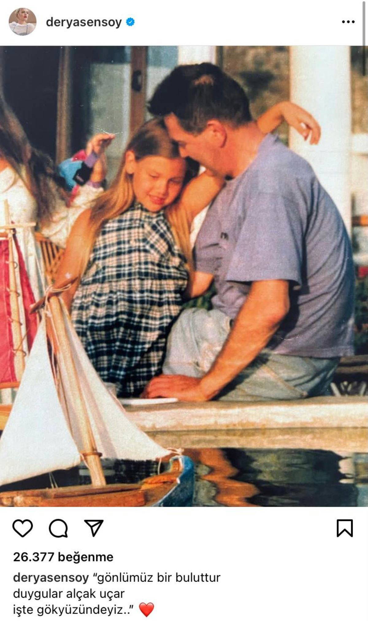 31 yaşındaki Derya Şensoy, yaptığı paylaşımda babasıyla yıllar önce çekilen bir fotoğrafını yayınladı. Şensoy fotoğrafın altına “Gönlümüz bir buluttur duygular alçak uçar, işte gökyüzündeyiz..." notunu düştü.