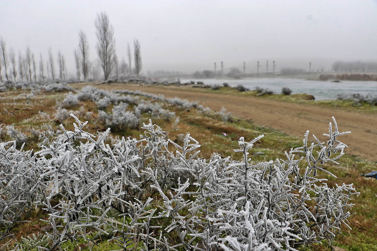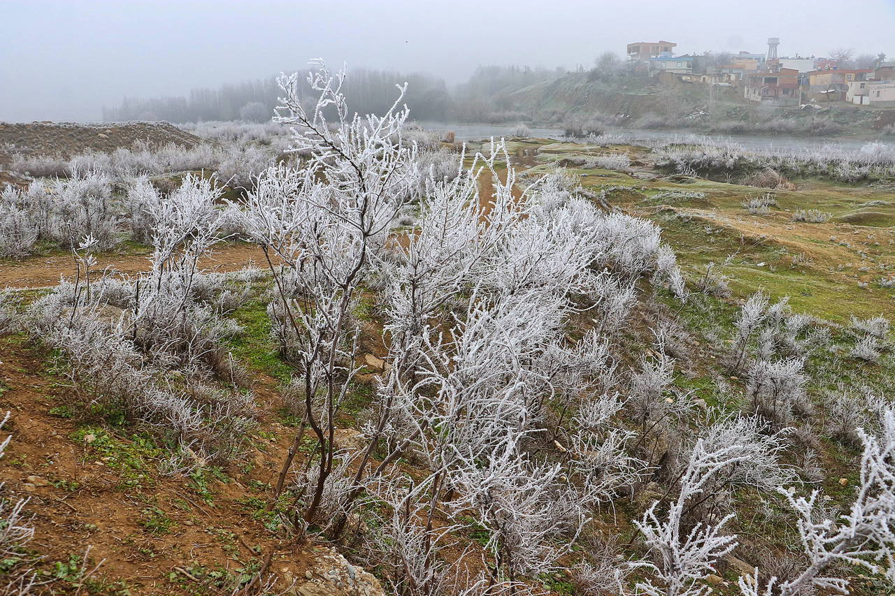 Hava sıcaklığının eksi 4 dereceye kadar düşmesiyle birlikte oluşan kırağı, UNESCO Dünya Kültür Mirası Listesi’nde yer alan Hevsel Bahçeleri’nin de içinde bulunduğu Dicle Vadisi’ni beyaza bürüdü.