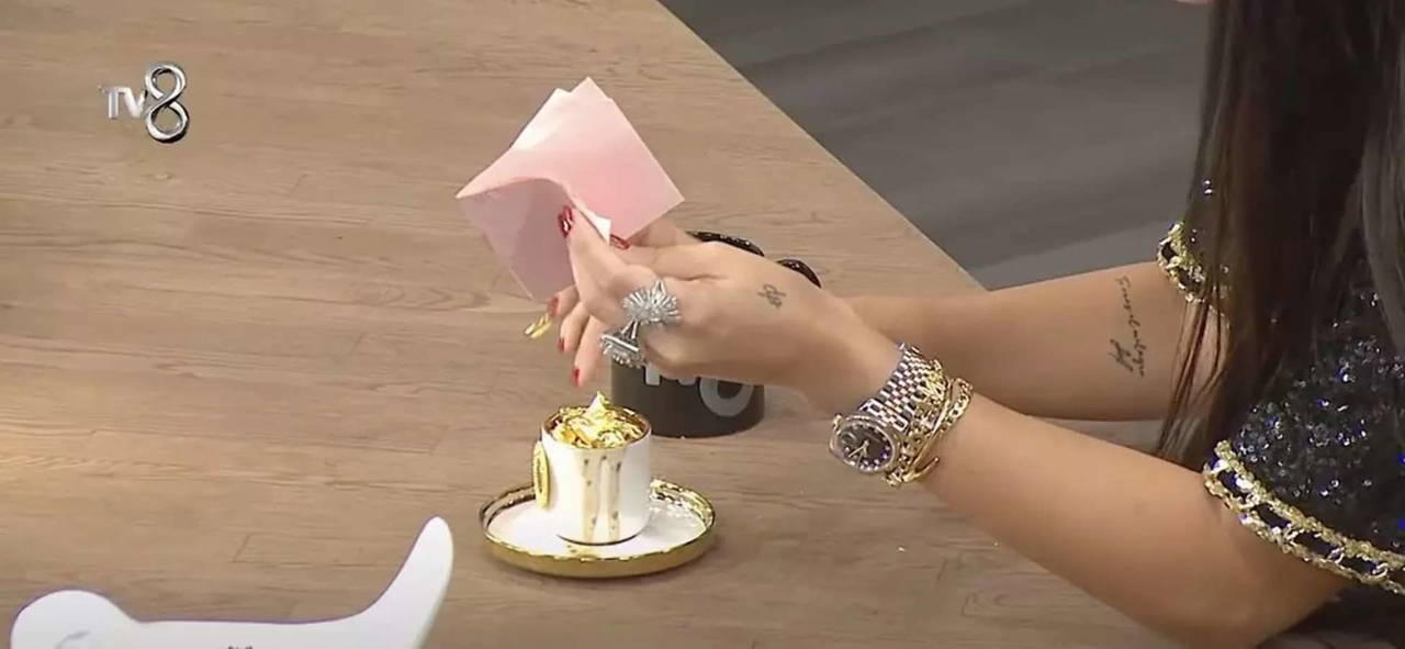 Çantasından altınlı kahve fincanlarını çıkaran Dilan Polat,