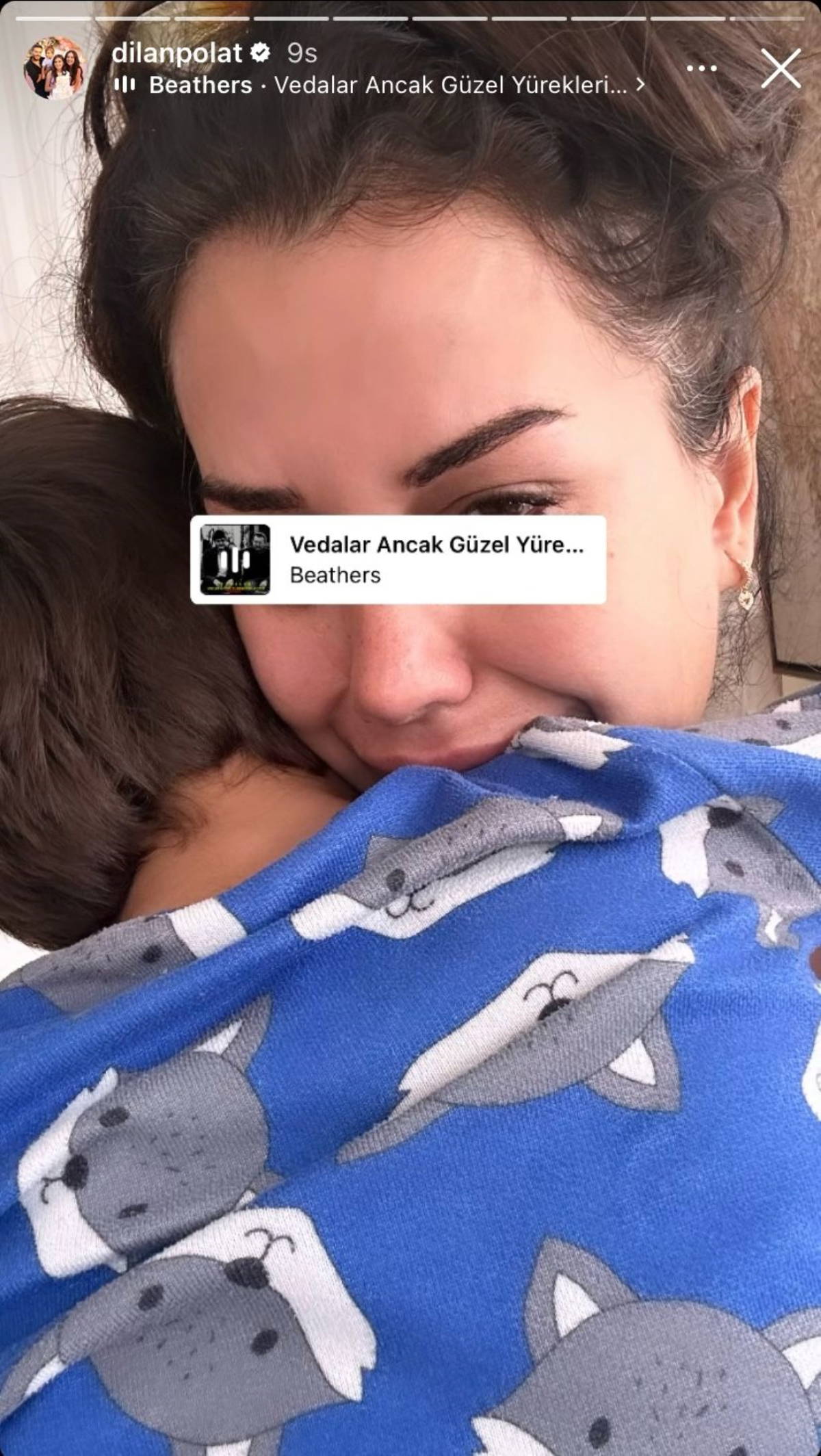 Polat’ın paylaşımda, çocuğuna sarılıp ağladığı fotoğrafa ‘Vedalar ancak güzel yürekleri acıtır’ isimli şarkıyı eklediği görüldü.
