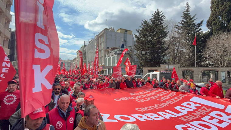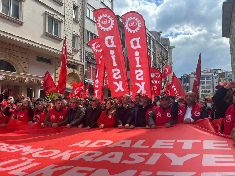 Devrimci İşçi Sendikaları Konfederasyonu (DİSK), gözaltı kararına karşı "Zorbalar kalmaz gider" şiarıyla Saraçhane’ye yürüyüş çağrısı yaptı. DİSK tarafından yapılan açıklamada, "Adalete, demokrasiye, ülkemize omuz omuza sahip çıktığımızda zorbalar kalmaz gider" ifadeleri kullanıldı.