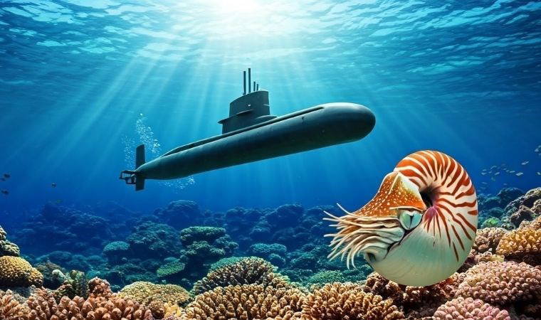 Nautilos balığı, suya batmak için vücudundaki özel odacıkları su ile doldurur ve yüzeye çıkmak için bu odacıkları özel gazlarla doldurur. Bu prensip, denizaltı teknolojisinin temelini oluşturur. Ancak, denizaltılarda yüzeye çıkarken suyun boşaltılması işlemi, nautilos balığındaki gazla doldurma işleminin yerini alır. Bu tasarım, su altında hareket etmeyi ve denizaltılar için gerekli dengeyi sağlamak için oldukça verimlidir.