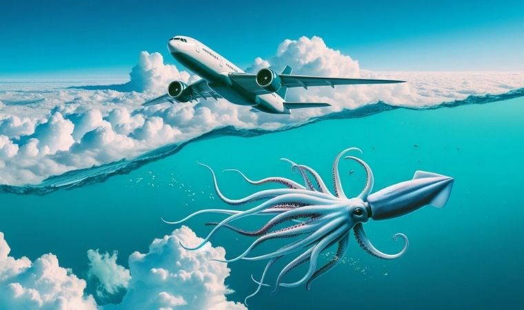 Mürekkep balığı, kendini savunmak amacıyla güçlü bir itme gücüyle hareket eder. Bu itme gücü, jet uçağının tasarımına ilham vermiştir. Jet uçaklarının itiş gücü, mürekkep balığının itme hareketinden esinlenerek geliştirilmiş ve yüksek hızda hareket etmelerini sağlamıştır.