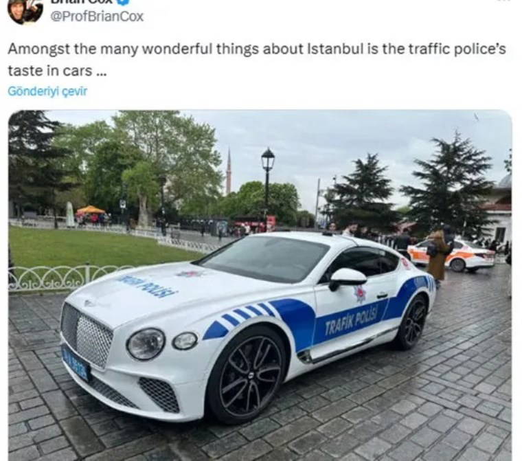 Prof. Cox'un paylaşımında İstanbul'da suç örgütlerinden ele geçirilen ve el konulan Bentley marka polis aracı yer aldı.