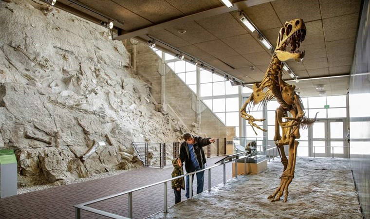 Kemikler Duvarı'nda bazı fosilleri görebilir ve hatta 150 milyon yıl öncesine ait bazı fosilleri dokunarak hissedebilirsiniz.