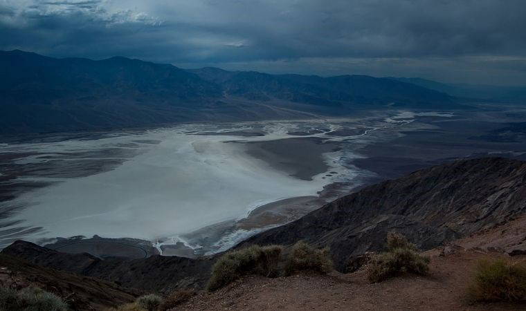 Death Valley'in Badwater Havzası, deniz seviyesinin 86 metre altında kalarak Kuzey Amerika'nın en alçak noktasıdır. Bu nokta, Whitney Dağı'nın doğu yamacının 136.2 km güneydoğusunda kalır, Kıta ABD'sinin en yüksek yeri ise 4.421 metredir.