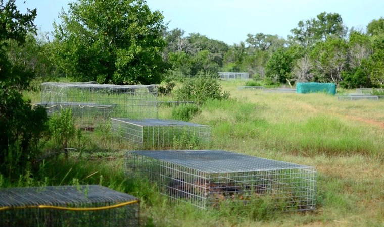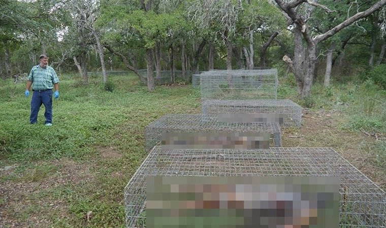 ABD'nin Teksas eyaletinde çekildiği anlaşılan görüntülerde, bir çiftliğin içinde dağılmış kafeslerde pek çok ceset görülüyordu.