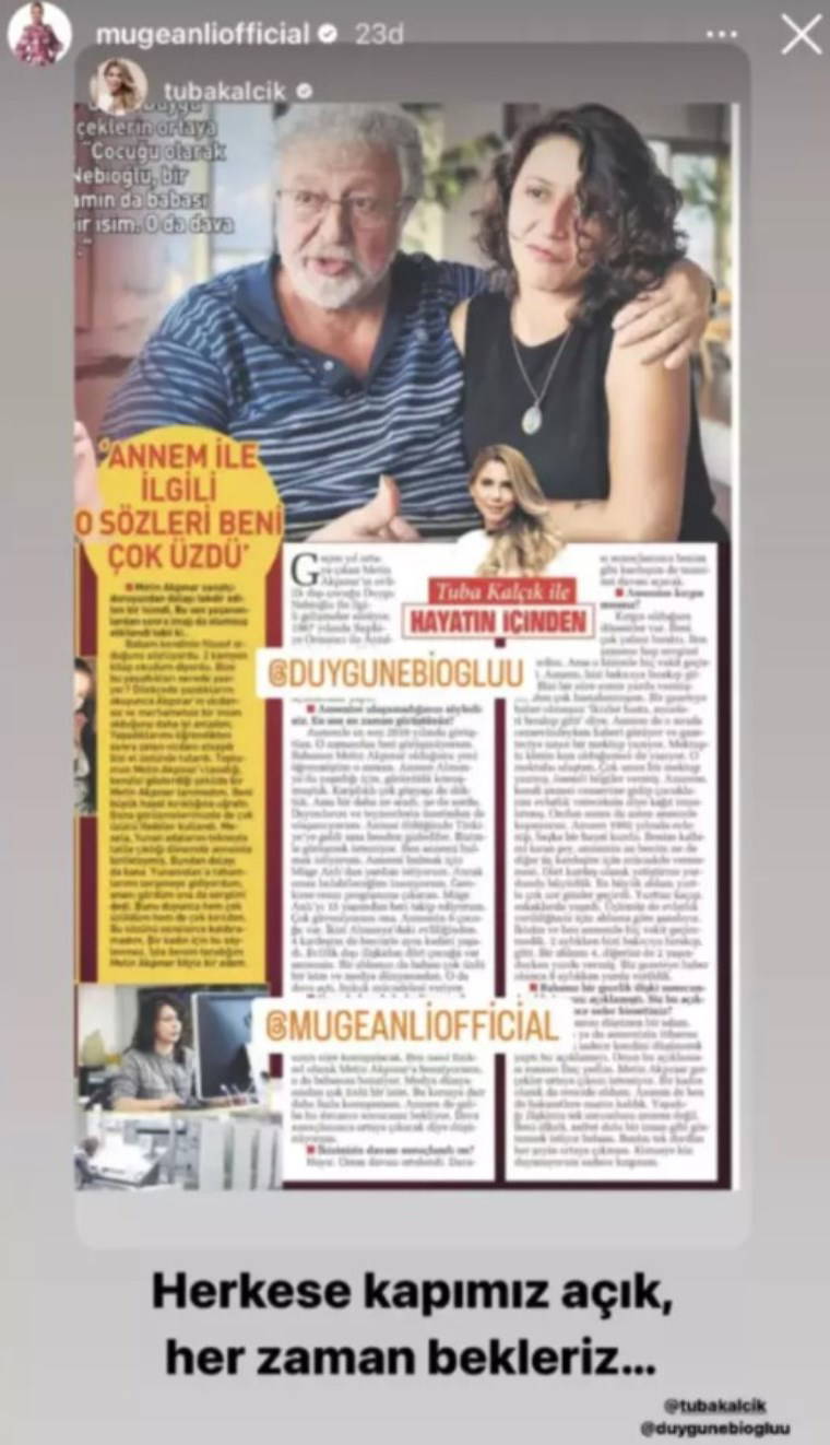 Müge Anlı ise annesini arayan Duygu Nebioğlu'nun bu yardım çağrısına kayıtsız kalmadı. Tuba Kalçık'ın paylaşımını kendi sosyal medya hesabından paylaşan Müge Anlı, "herkese kapımız açık, her zaman bekleriz" diyerek Duygu Nebioğlu'na destek oldu.