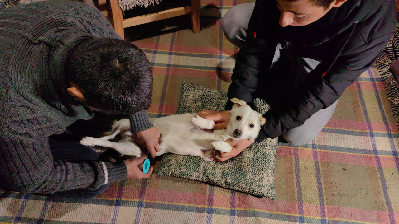 “Bundan 1 ay önce arabayla doğa yürüyüşü yapacağım yere çıkmıştım. İnerken sağda bir köpek gördüm. Sonra bir sakatlığı olduğunu fark ettim ve geri döndüm. Vicdanım el vermedi. Ne olur ne olmaz diye bakayım dedim. Sonra ismini verdiğim Pamuk’u aldım eve getirdim. Pamuğun arka ayağı sakat olduğu için tuvalete çıkamıyordu. Ben de bir bebek gibi bezlemeyi düşündüm. Zaten evde bakıyoruz köpeğimize. Her gün bezledikten sonra ne yapabilirim diye düşünmeye başladım.”