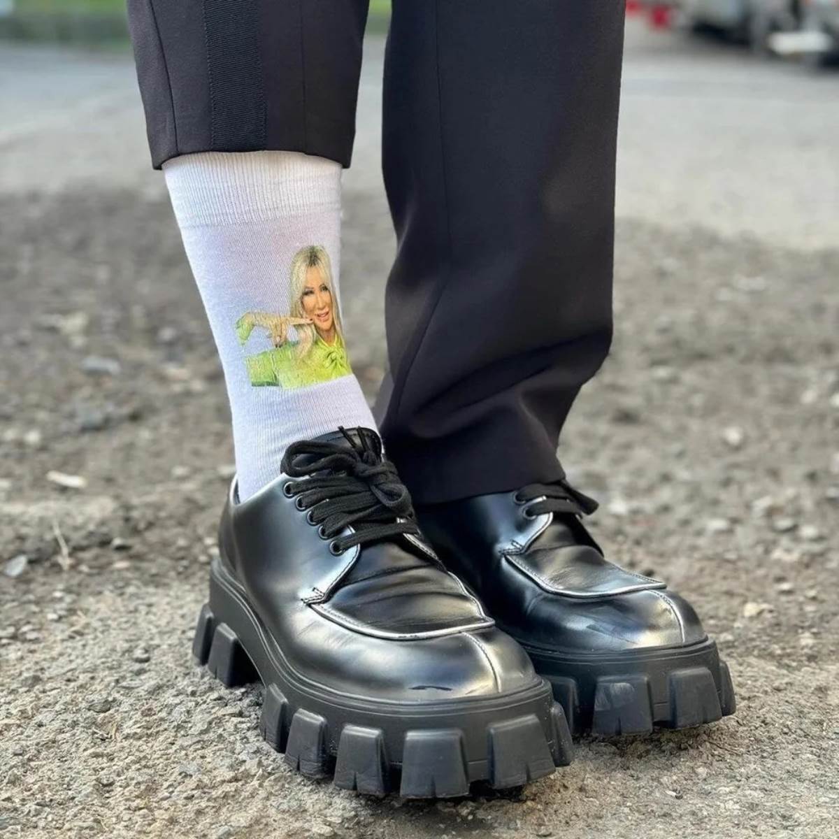Arıkan'ın sahnede giydiği Seda Sayan baskılı çorapları da